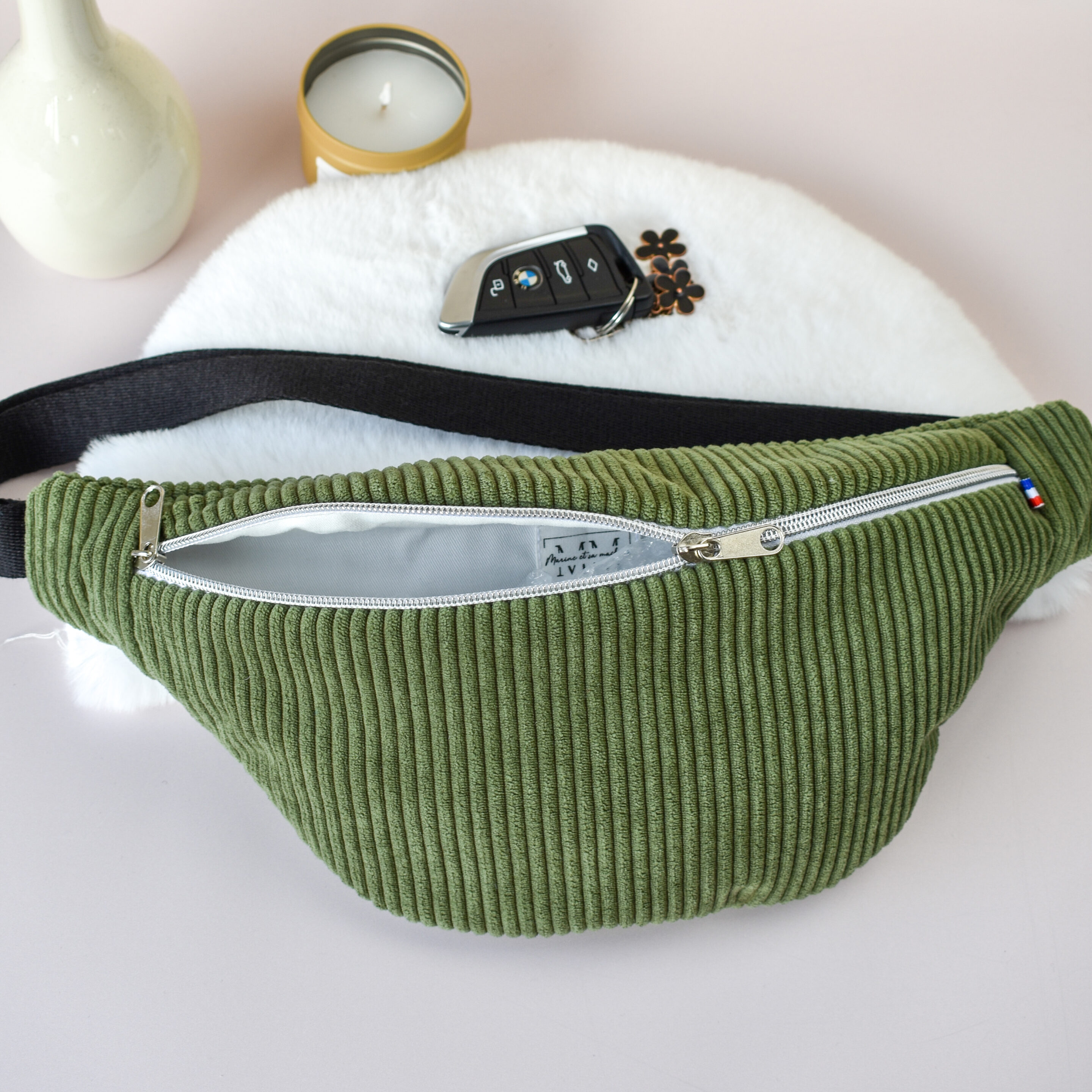 Il rend l’ouverture plus pratique et permet d’ajuster la fermeture selon le porté. - Comment laver un sac banane en velours côtelé kaki ?