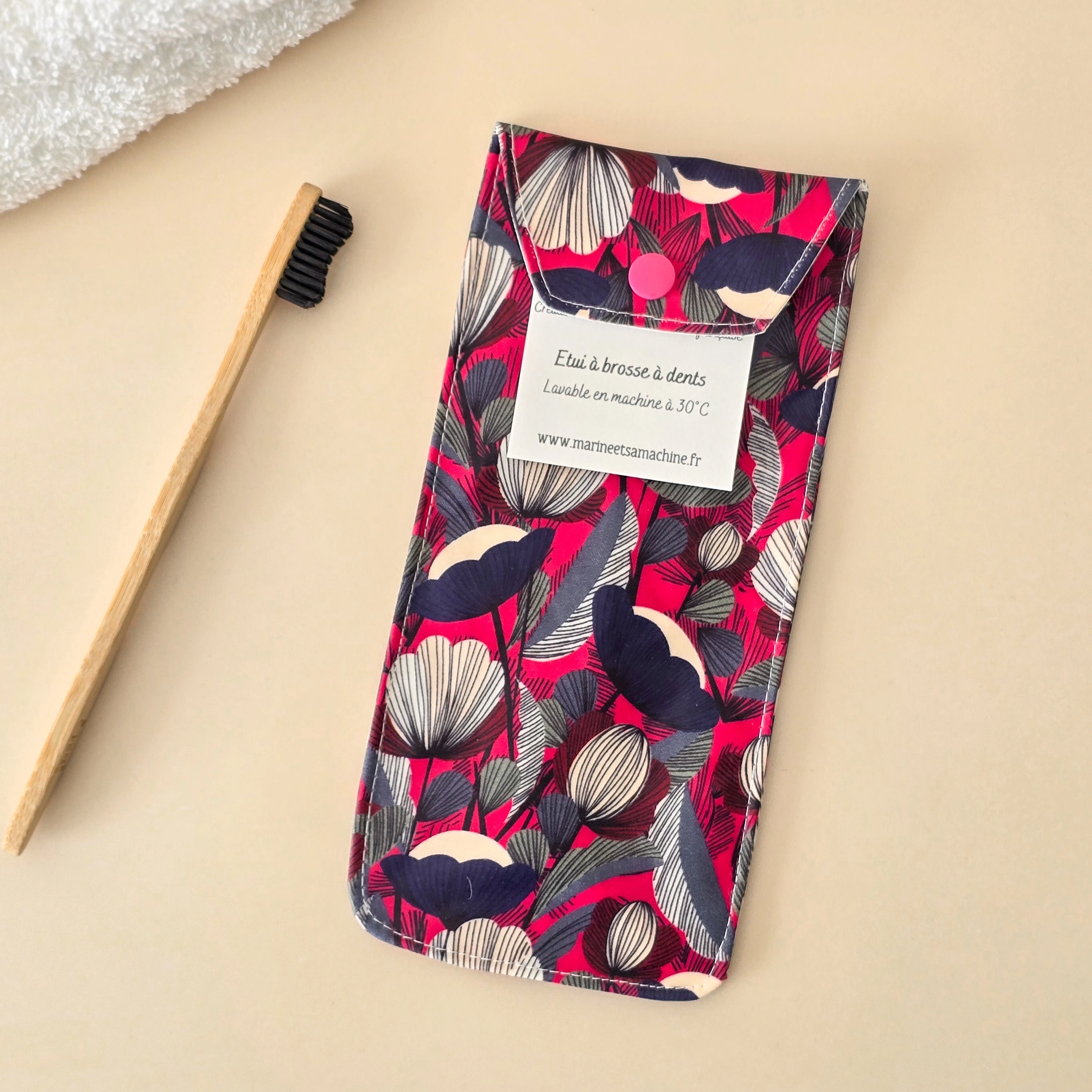 Découvrez notre etui brosse a dent pavot fushia, pour transporter votre brosse à dents avec une touche florale et audacieuse à chaque déplacement. Fabrication artisanale française.